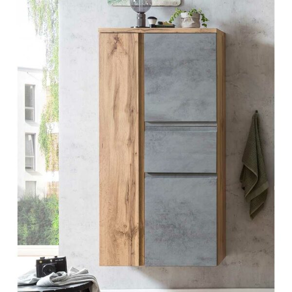 Badmidischrank Hängend: Wildeichefarben und Betongrau – Eine Symbiose für Ihr Traumbad