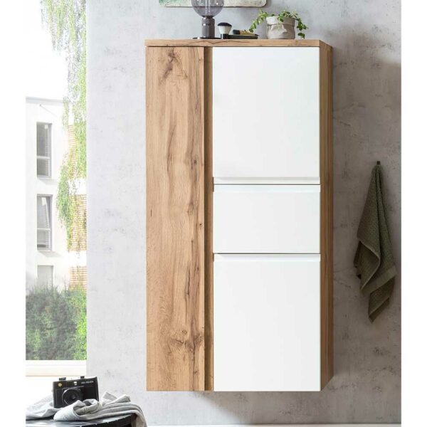 Verwandeln Sie Ihr Badezimmer in eine Wohlfühloase mit unserem Midischrank in Wildeichefarben und Weiß